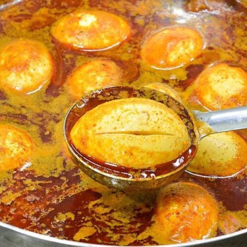 - Slit the Eggs: Make a small slit in the boiled eggs before adding them to the curry. This helps the eggs absorb the rich flavours of the gravy.